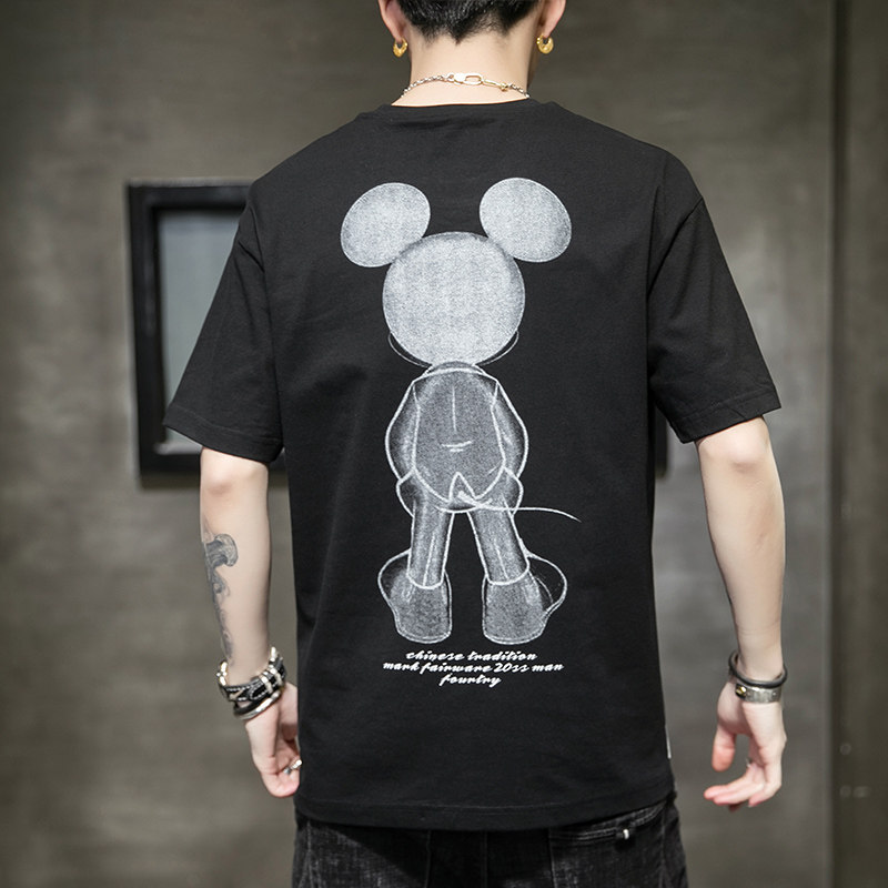 短袖男夏季日系卡通恐龍印花上衣半袖